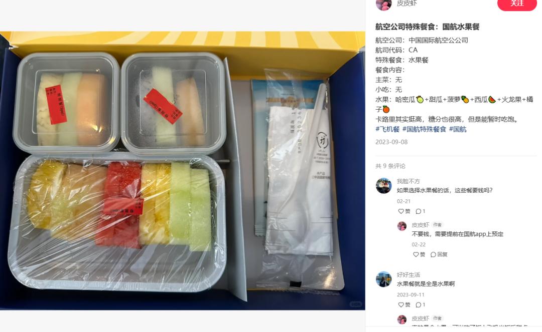 由于大部分旅客对于飞机餐食基本属于“听天由命”的状态,也就错失信息差:原来飞机餐是可以提前预定的。