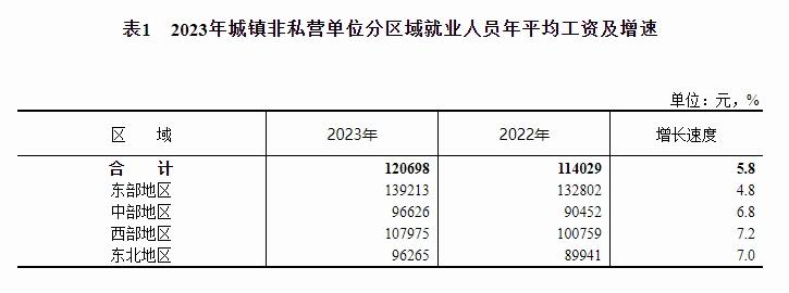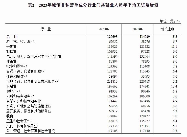 2023年,全国城镇非私营单位就业人员年平均工资为120698元,比上年增加6669元,名义增长[1]5.8%,扣除价格因素实际增长5.5%。