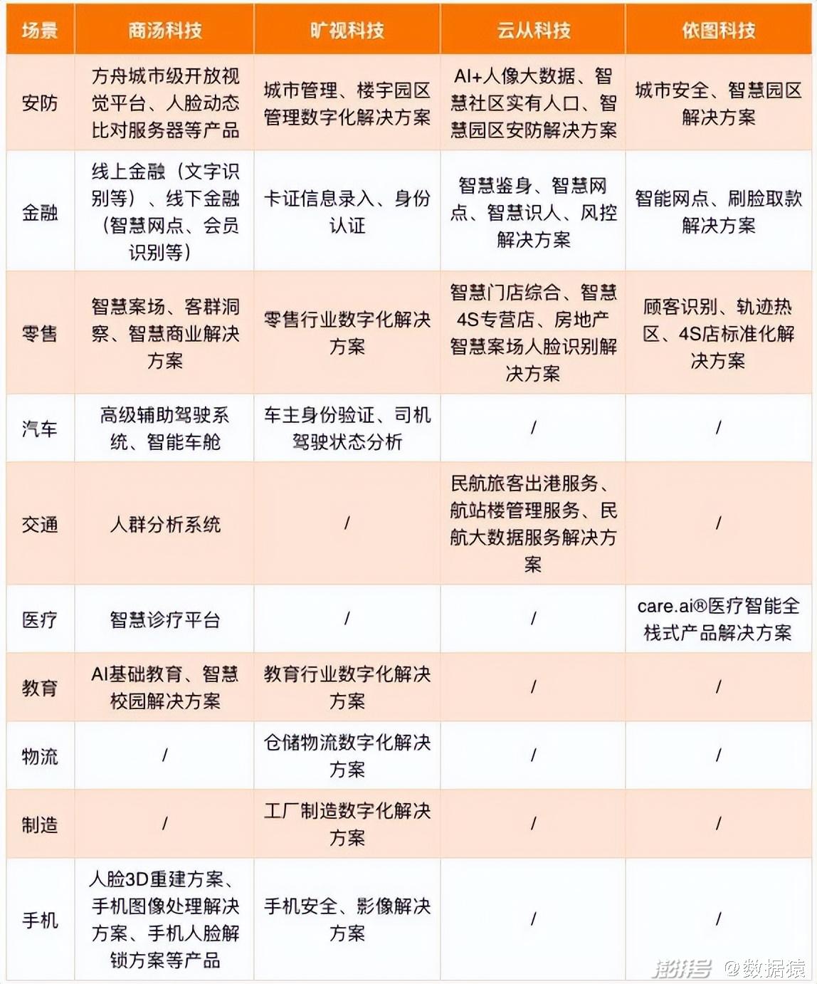 “四小龙”早期业务场景重合度高(千山资本2019研报)