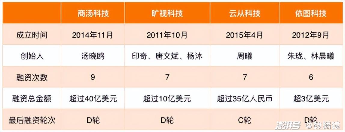 资金流:对于创业公司来说,是否能在快速发展阶段融到足够的资金,决定了公司未来的市场份额。CV四小龙在早期都融到了支持其发展的资金。