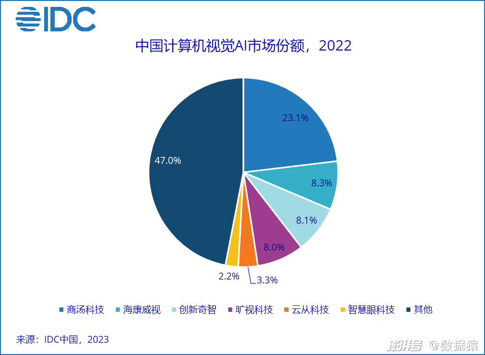 2022年中国人工智能软件市场规模为307.3亿元人民币,相比2021年下降了6.9%,这是近十年来的首次负增长。在大模型热潮出现之前,人工智能市场缺乏有力的增长驱动,导致整体市场出现下滑。老牌上市企业在下滑市场中仍能实现小幅增长,而成长型企业则需要持续提供领先技术或找到稳定增长潜力的赛道。