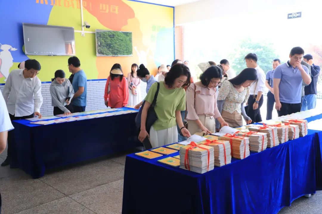 第一站来到双泉小学,在解说员的带领下,参观人员从“唱响童年”“跃动童年”“诗韵童年”“童赴未来”四个方面了解了学校的特色,以及学校在培养学生艺术、运动、孝德方面的特色和未来的发展规划。该校始建于1958年,历经60余载。2023年,由上海新理益集团有限公司捐建、政府配套投资1个亿,对双泉小学进行改扩建。扩建后的双泉学校,设计规模为54个教学班(小学部36个,初中部18个),可提供2700个学位。扩建项目除教学、办公用房外,还设有学术报告厅、阅览中心、艺术中心、电教中心、创客中心、心理咨询中心等培养学生个性发展的功能场馆。