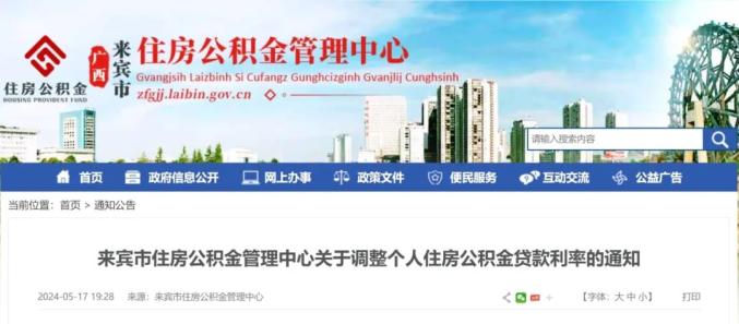 5月17日,来宾市住房公积金管理中心发布关于调整个人住房公积金贷款利率的通知,明确其执行方式。