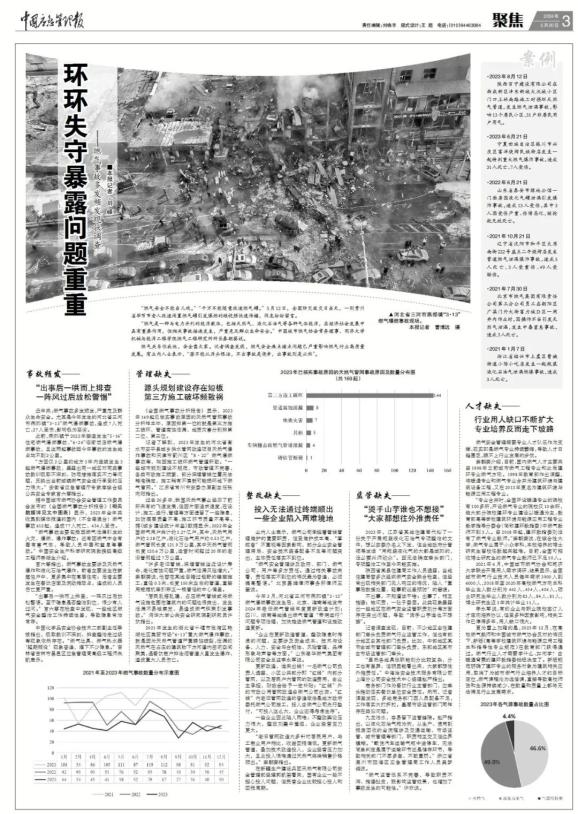 记者了解到,2023 年发生的河北省衡水市安平县城乡供水管网改造项目天然气爆炸事故和天津市蓟州区“8·22”燃气爆燃事故等,均因施工破坏燃气管道所致。“一些城市规划建设不规范,市政管理不完善,各类市政施工频繁,部分深埋管线位置无法精准确定,施工稍有不慎就可能损坏地下燃气管网。”江苏省常州市安委办原副主任张向阳指出。