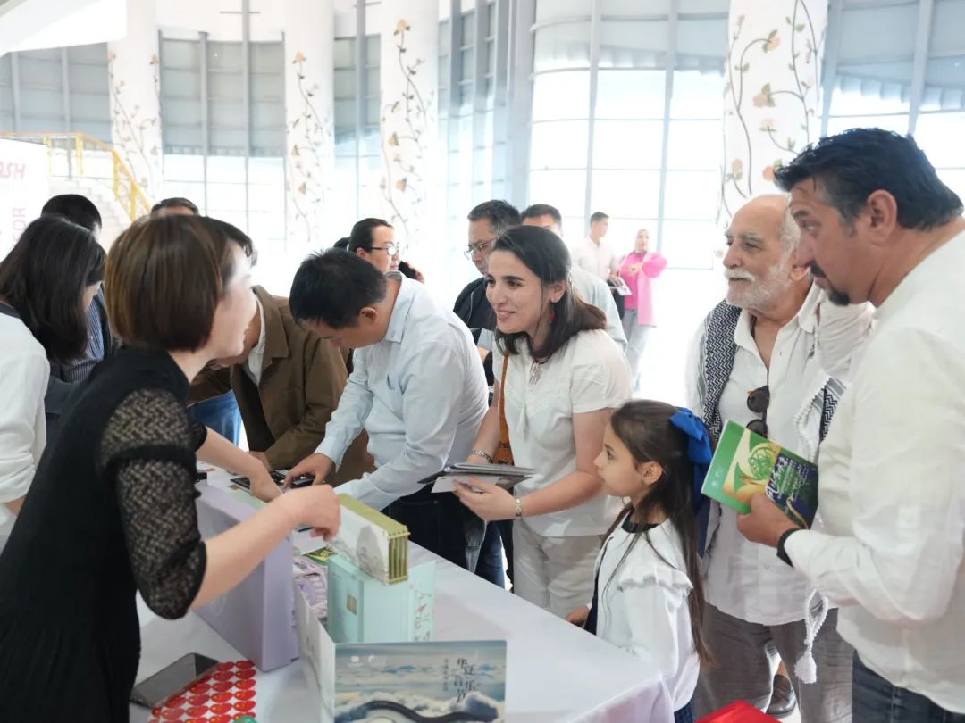 体验展台的设置,受到当地观众的喜爱,现场排起了几十米长的队伍,五百份苏州丝绸服饰纹样套色印章明信片被领取一空,许多当地观众在展台工作人员的热情介绍和实物文创的“双重作用”下,对中国,对苏州都有了更加深入的了解。