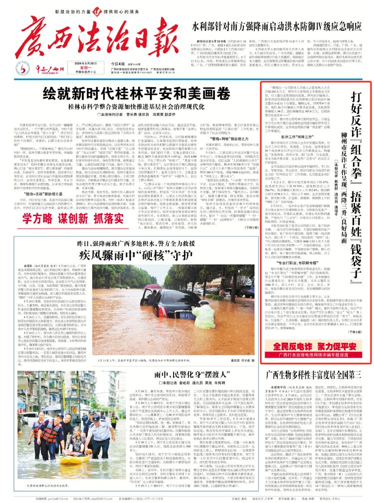 2024年5月20日,刊登于广西法治日报头版打好反诈“组合拳” 捂紧百姓“钱袋子”