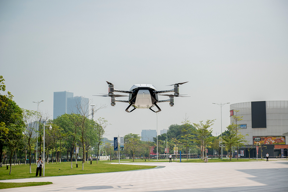 5月15日,在广州市番禺区小鹏汇天总部,飞行汽车旅航者X2在进行飞行演示。 新华社记者 徐嘉懿 摄