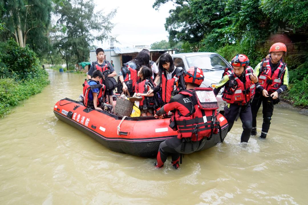 5月19日,钦州市沿海地区出现持续强降水,钦州港部分低洼地段发生了严重内涝,市消防救援支队出动救援力量紧急转移被困群众 拍摄:李斌喜