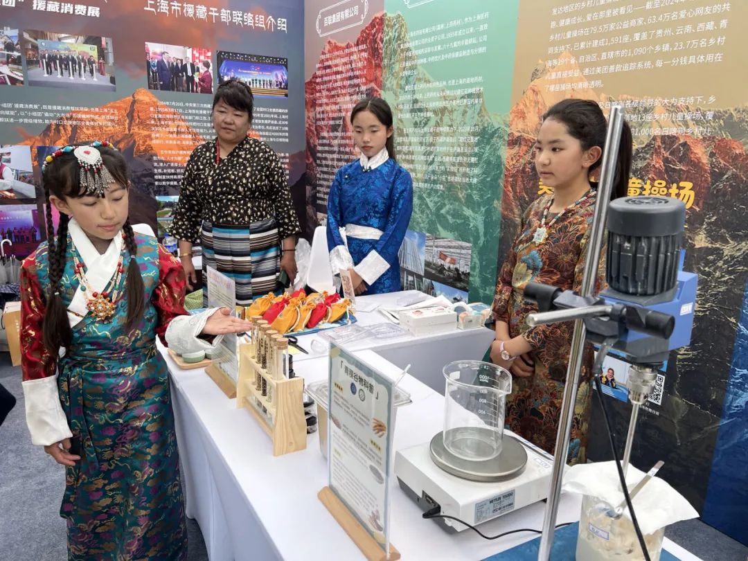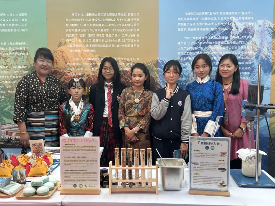 集体合照5月11日至12日,“山海相拥·吉祥汇聚”——市场“小组团”援藏消费展在青浦百联奥特莱斯举行。本次活动由上海市援藏干部联络组携手北京、江苏、浙江、安徽援藏干部联络组,展示了拉萨、日喀则、那曲、山南90多家企业400余款特色“藏品入沪”。其中,日喀则市上海实验学校师生在日喀则展块中设立了学校科学教育成果汇报展台,集中展示《多彩青稞》创新创意课程成果。展示过程中,三名学生分别向参观市民介绍青稞用途、青稞护手霜制作工艺以及中草药香囊用途。青稞护手霜与青稞润唇膏已成功实现了从企业实验室到中小学课堂再到产品市场的成功跃迁。本次日喀则市上海实验学校师生代表也参与到援藏消费展中,成为这一“藏品”的“小小推销员”和文化交流与传播的“形象大使”,身着传统藏装的日喀则市上海实验学校的师生成为了展览中的一道靓丽风景线,得到了来自广大市民的认可与喜爱。