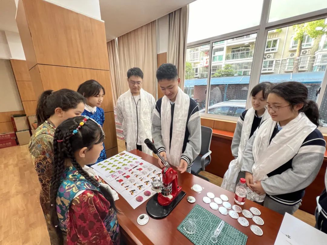 参访上海市杨浦高级中学之后,上海市杨浦高级中学党总支书记张焱、德育副主任秦亮和学生代表出席座谈交流会,双方交流了各自学校基于科学场馆开展科学教育和劳动教育的基本情况。会后,沪藏两地师生一起参加校园植物徽章和标本制作等动手实践活动。