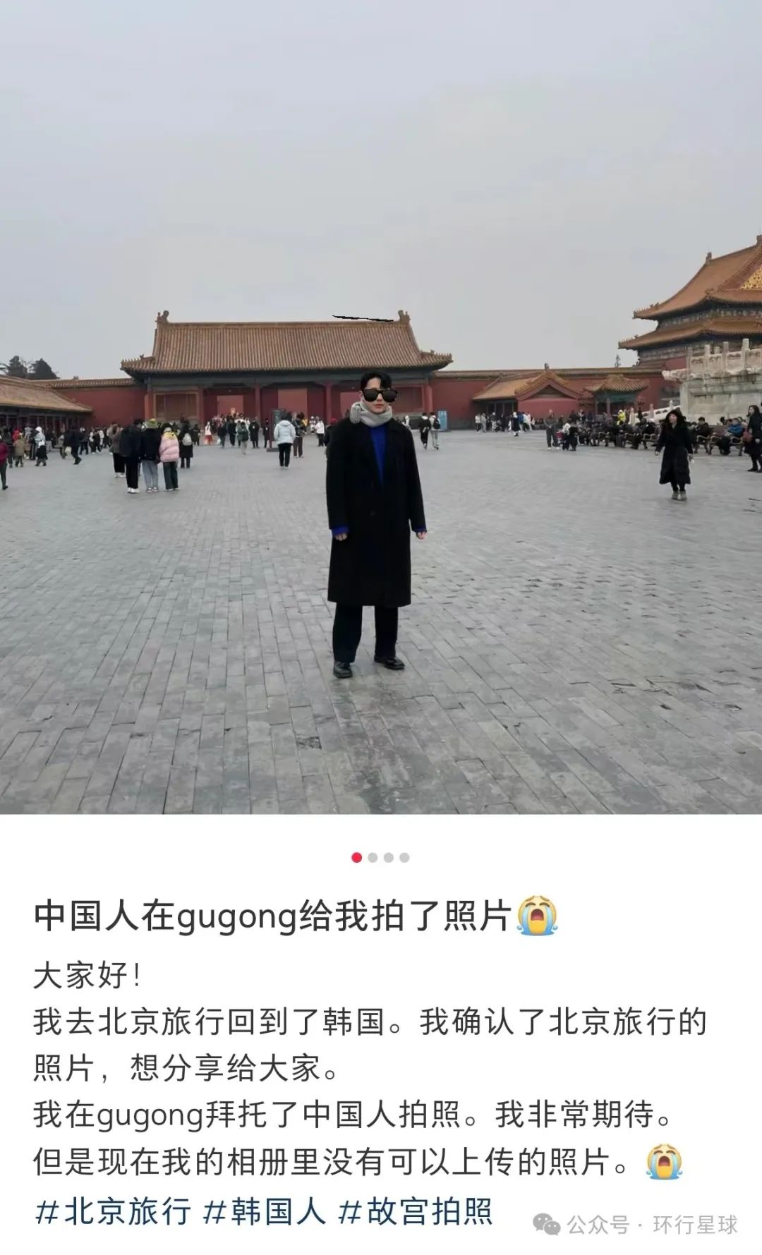 还有一位叫做浚洙的韩国游客在故宫独自游览时,找路人帮忙拍了张照片,但感觉不是很满意。后来发到小红书求助,结果有近两万个人点赞,还被网友锐评“高情商”。