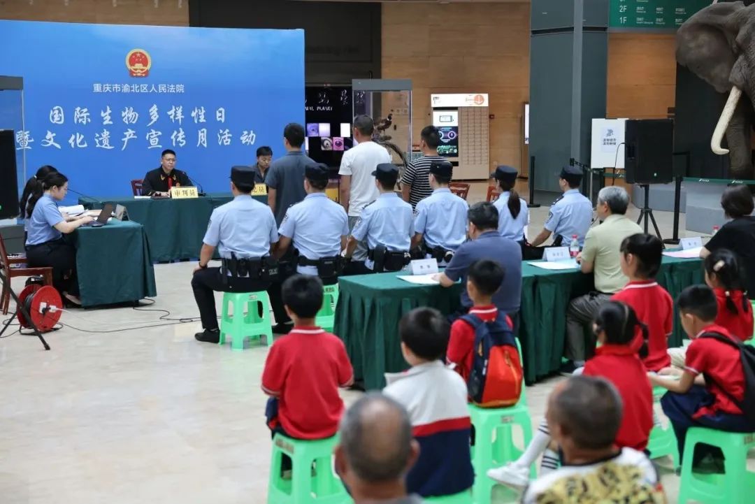 5月21日,在国际生物多样性日前夕,重庆市渝北区人民法院与重庆自然博物馆联合开展“国际生物多样性日暨文化遗产宣传周”法治科普教育活动,传播生物多样性保护理念。当天,渝北区法院在自然博物馆大厅内公开开庭审理了一起非法狩猎案。