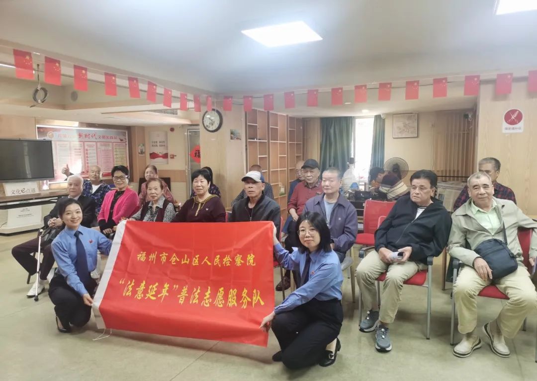 为深入贯彻落实最高检“检护民生”专项行动要求,践行司法为民的宗旨,更好维护老年人群体合法权益,近日,福州市仓山区人民检察院“法意延年”普法宣传队深入菖蒲社区,举办了一场主题为“检护民生 预防养老诈骗”的普法宣传活动,帮助社区老年人识别、防范各类诈骗手段,提高法律意识。社区50余名退休老党员参加活动。