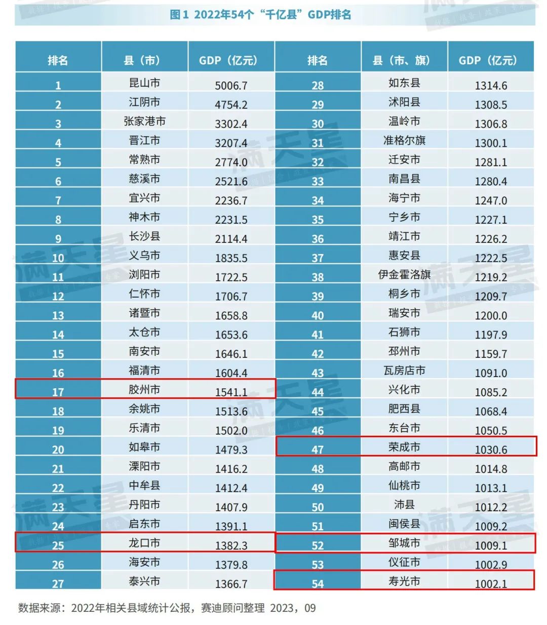 赛迪顾问发布的《2023中国县域经济百强研究》报告显示,山东共有百强县13个,在江苏(23个)、浙江(16)之后,排名全国第三。三省中,山东拥有的县级市和县的总量最多,但百强县数量最少。