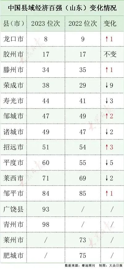 从全国排位看,此次入选引领发展试点的10个县域中,龙口、胶州分别位列2023年全国百强县第8、第17位,占据山东在20强中仅有的2个席位。相比之下,浙江有7个县域上榜20强;江苏有6个县域上榜20强,且全部集中在前10名。