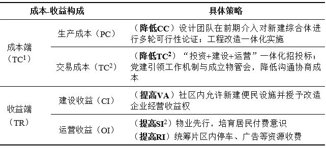 表3 光华里项目基于“成本—收益”关系优化的具体策略