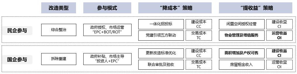 图6 不同改造模式“降成本”“提收益”路径比较资料来源:作者自绘