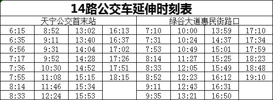 绿谷大道惠民街路口:首班7:15,末班19:15。