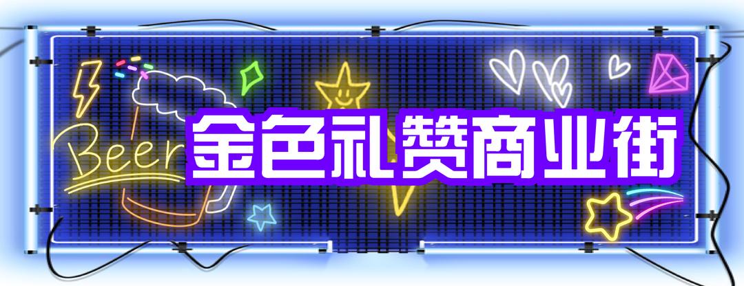 华灯初上,金色礼赞商业街开始沉浸在一场盛大的狂欢之中。灯火阑珊、人声鼎沸,闹闹哄哄的,才是夜市的正确打开方式。