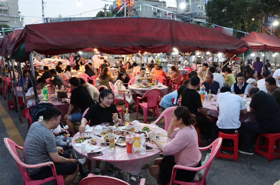 人潮拥挤,欢声笑语,空气中弥漫着各种美食的香气。趁着晚风温柔,跟好友在室外凑上一桌,聊天、撸串、小酌,捕捉夏夜里最平凡、最易获得的快乐。