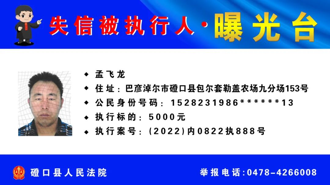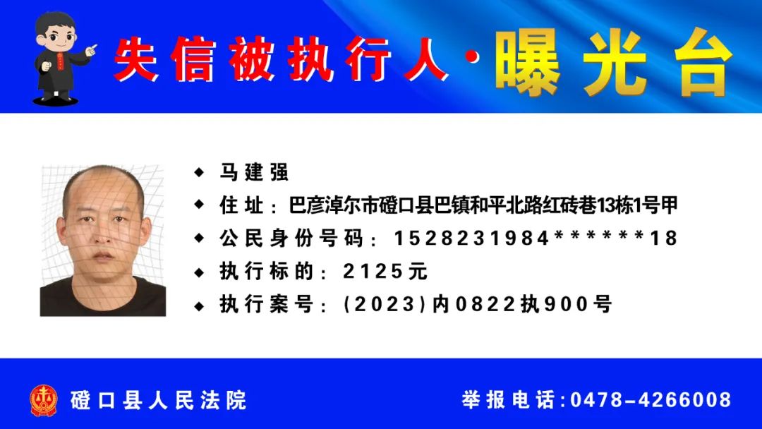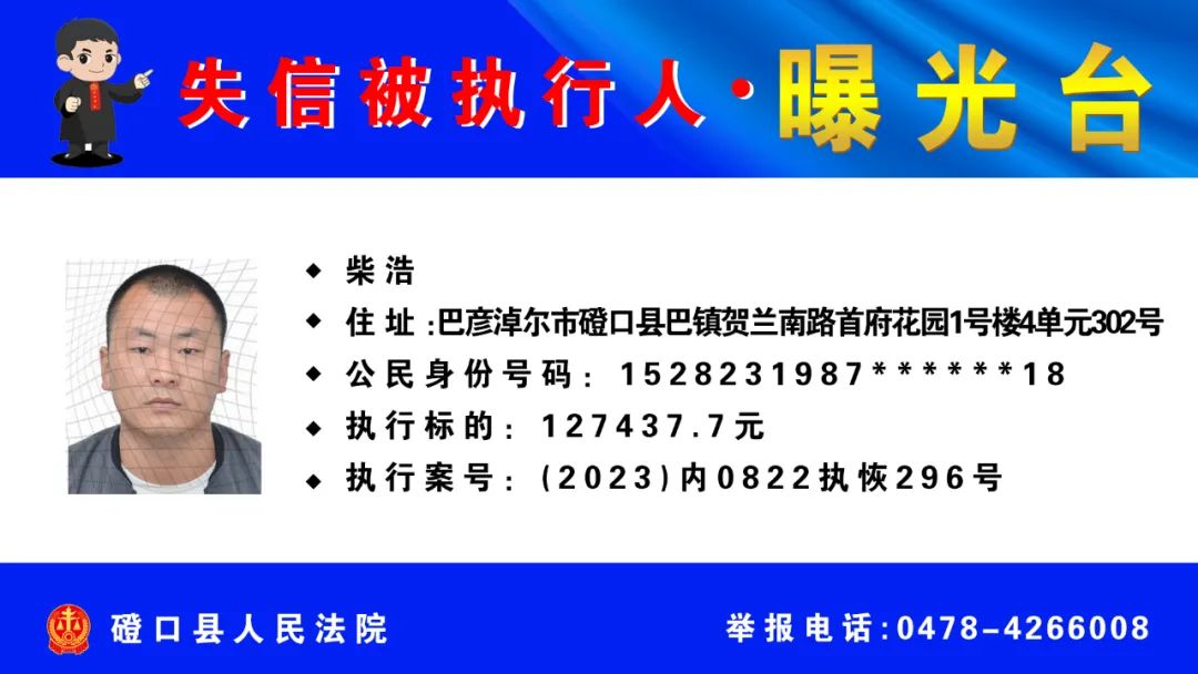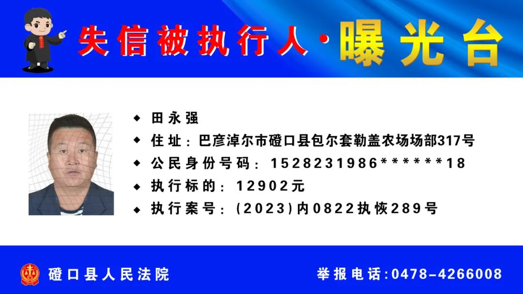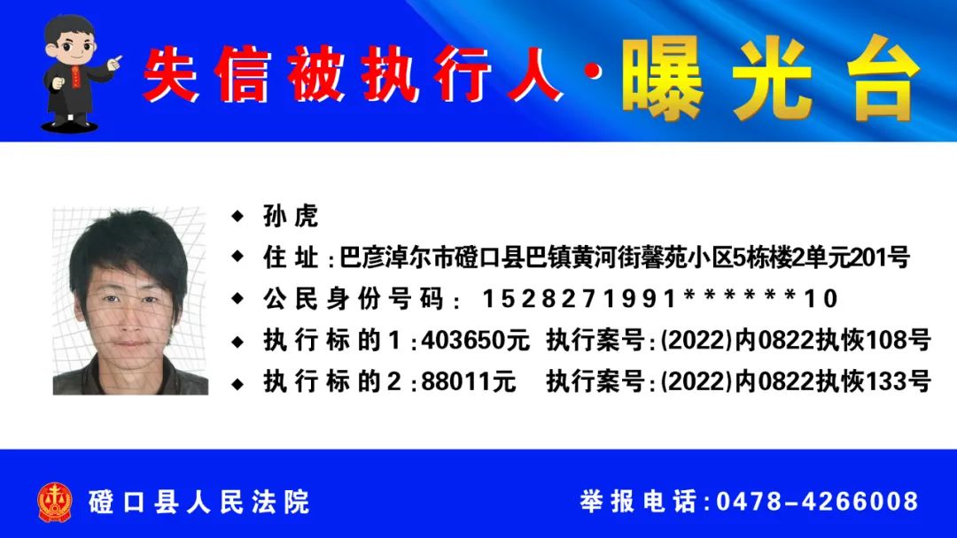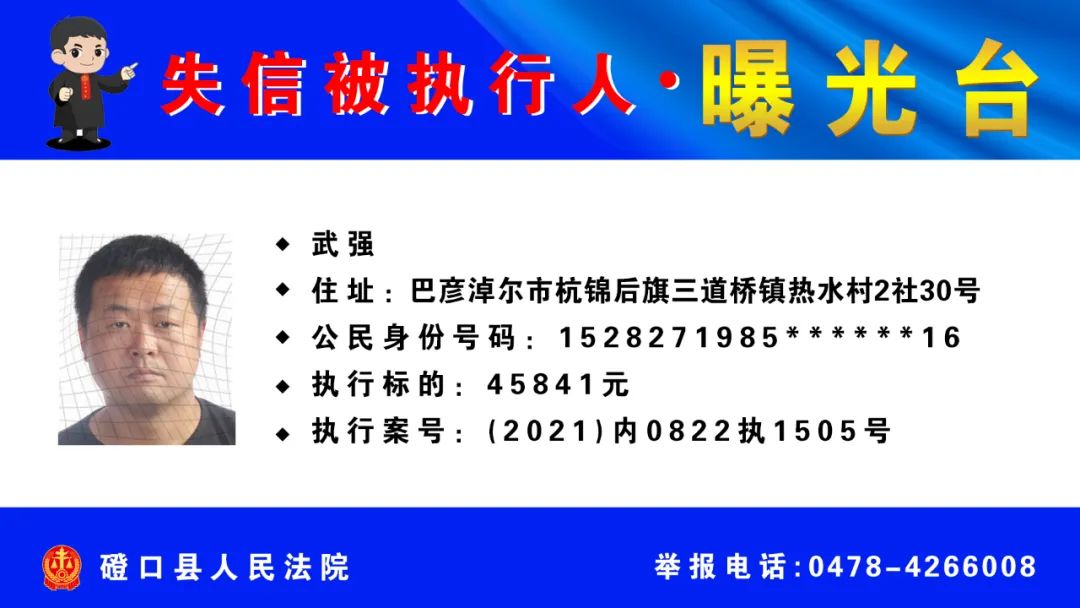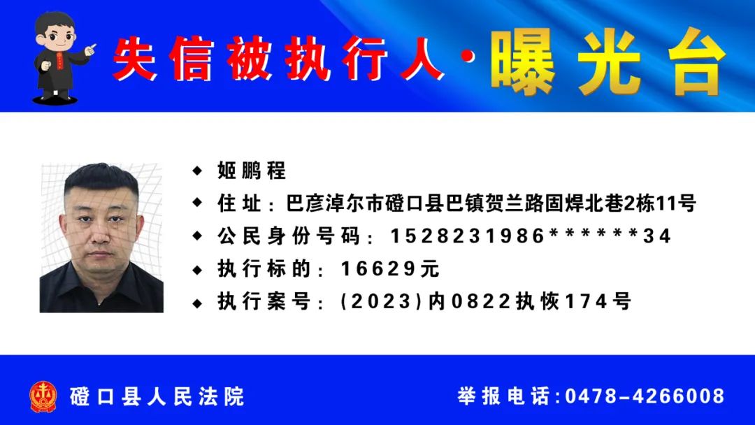 【诚信建设】磴口县人民法院发布失信被执行人名单