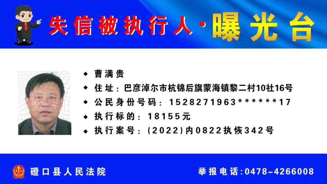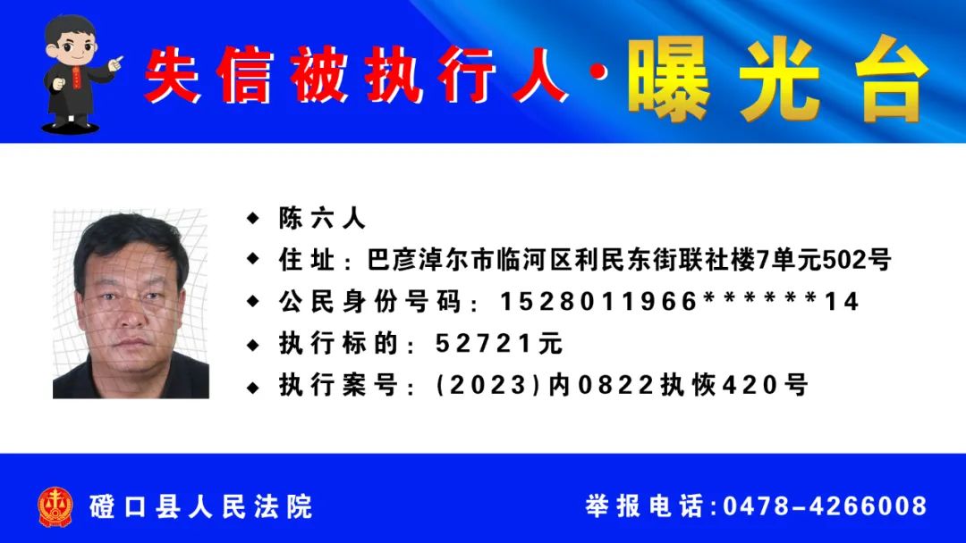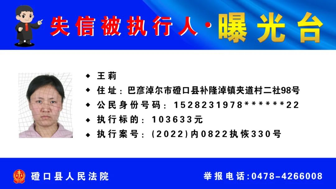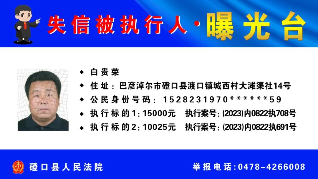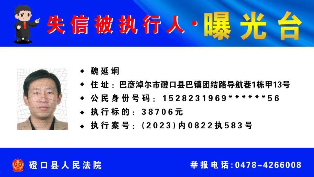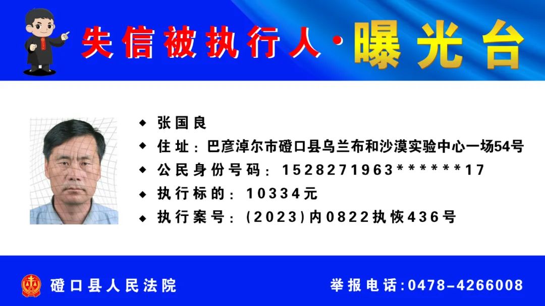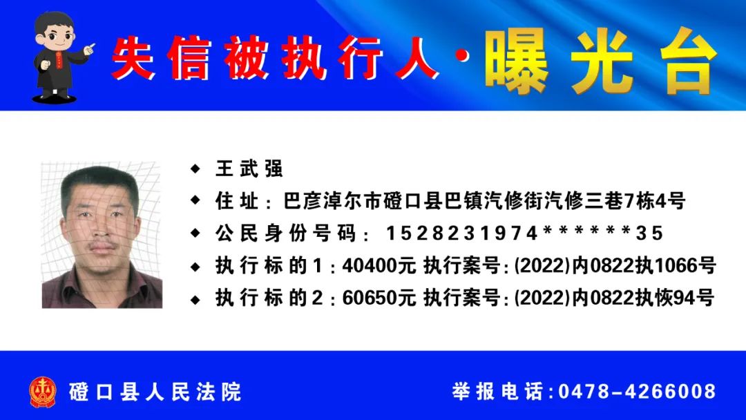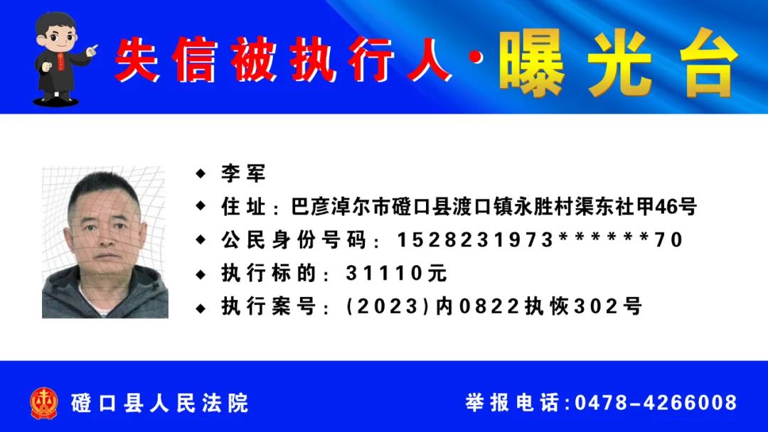 【诚信建设】磴口县人民法院发布失信被执行人名单