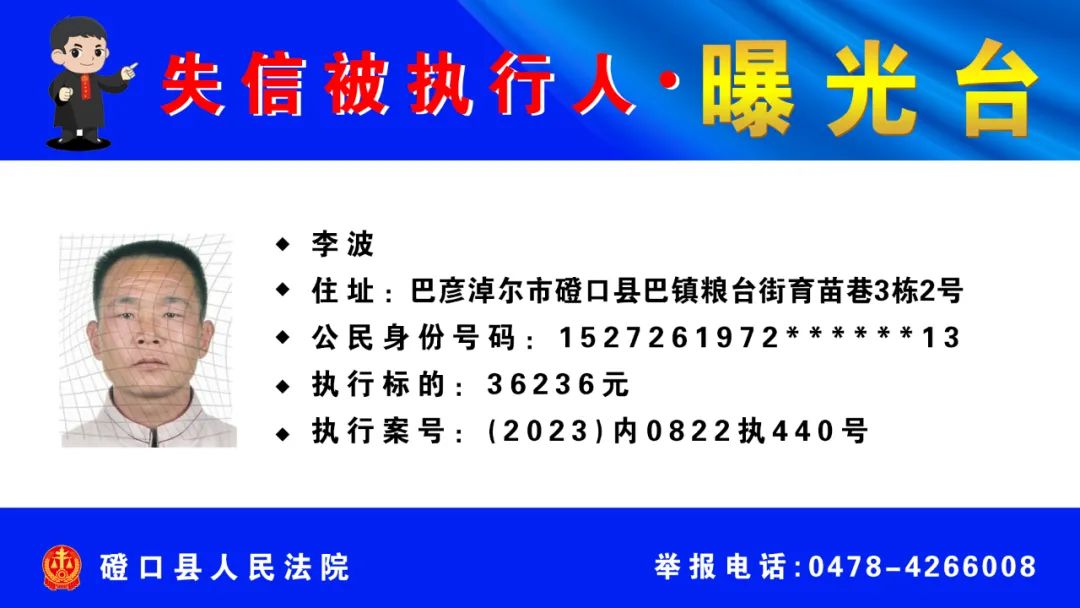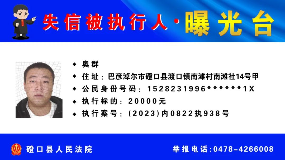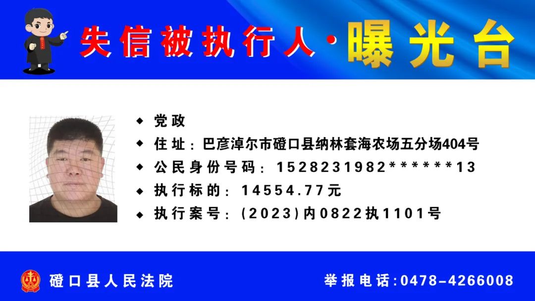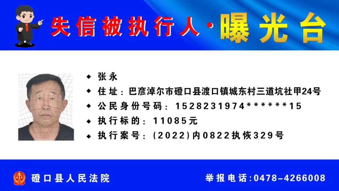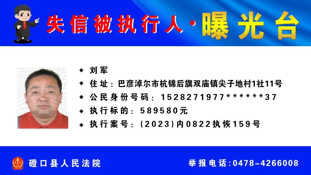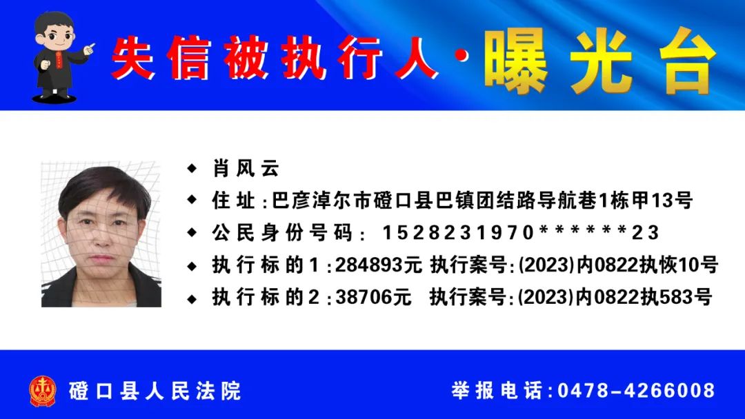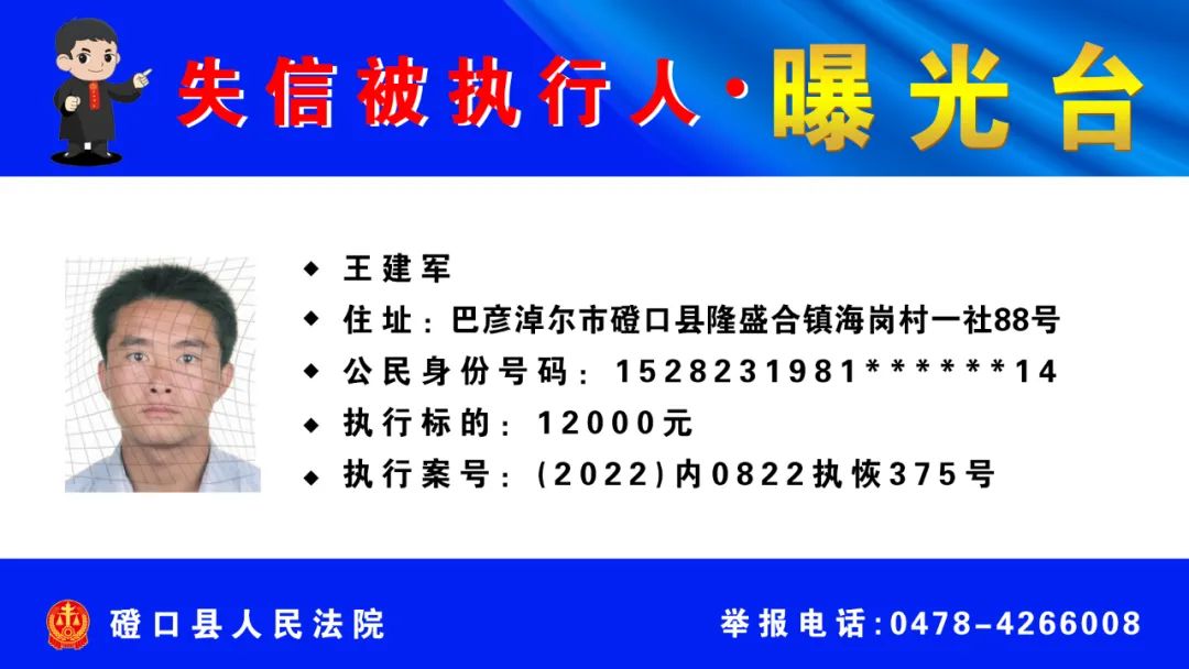【诚信建设】磴口县人民法院发布失信被执行人名单