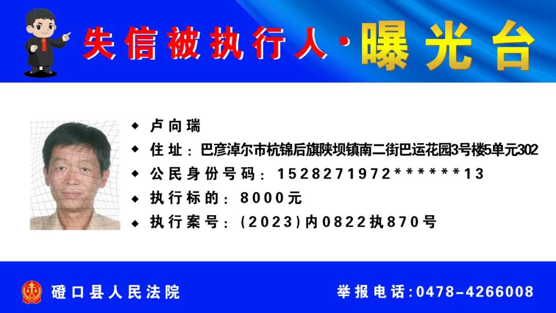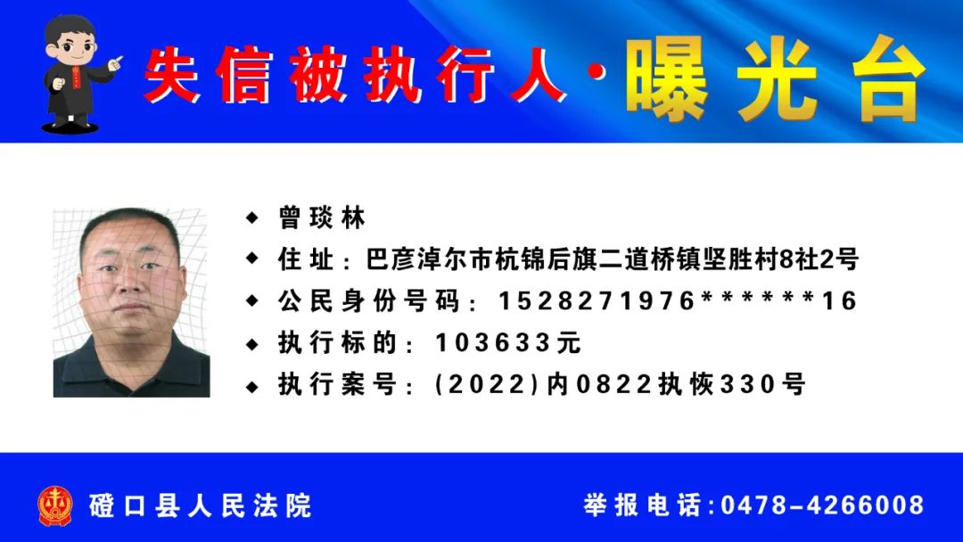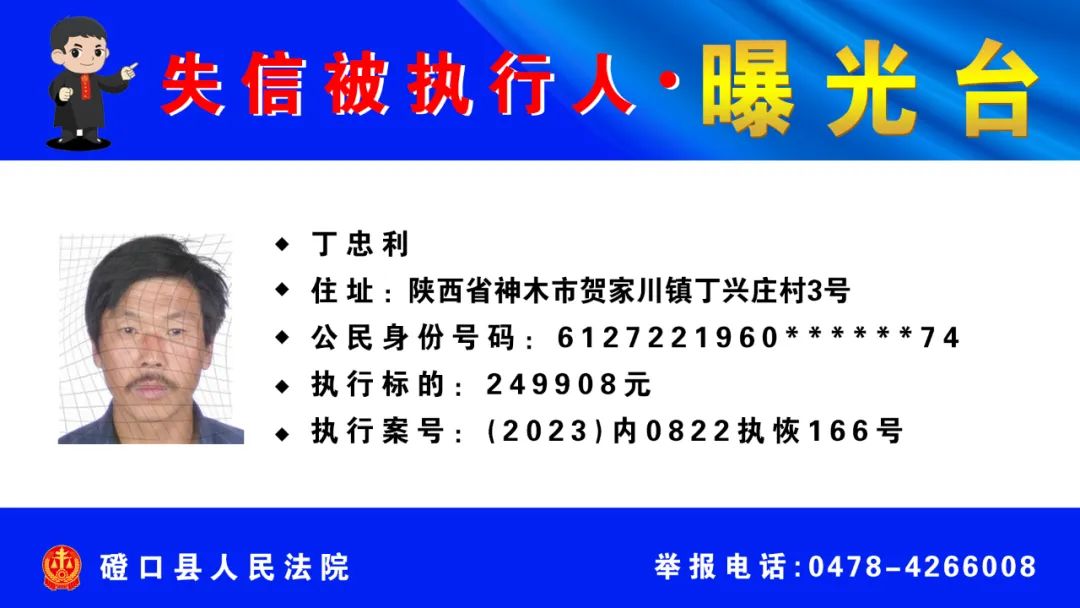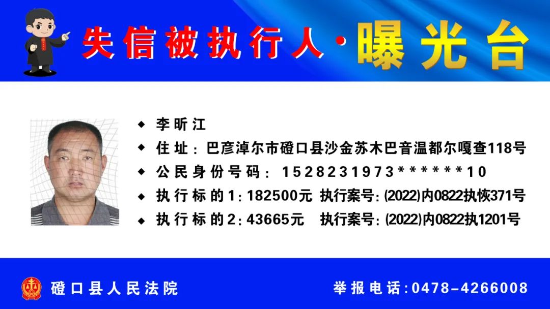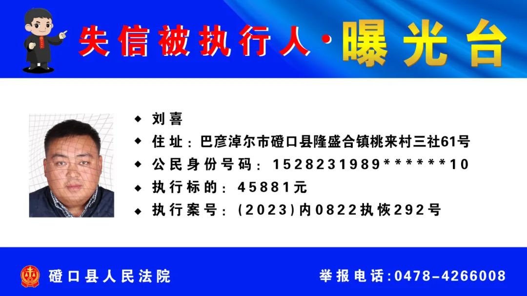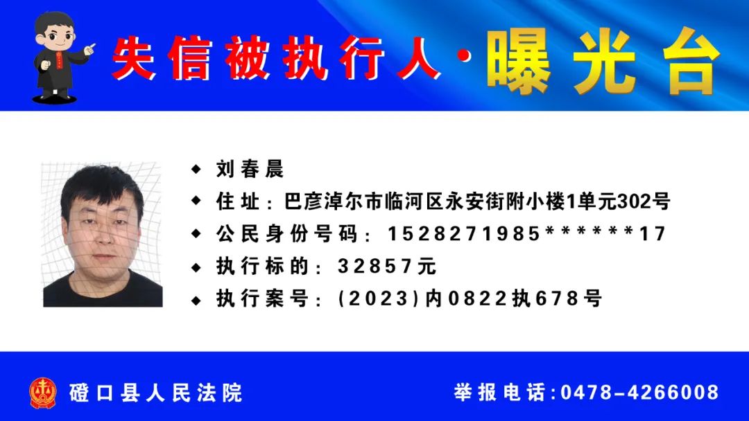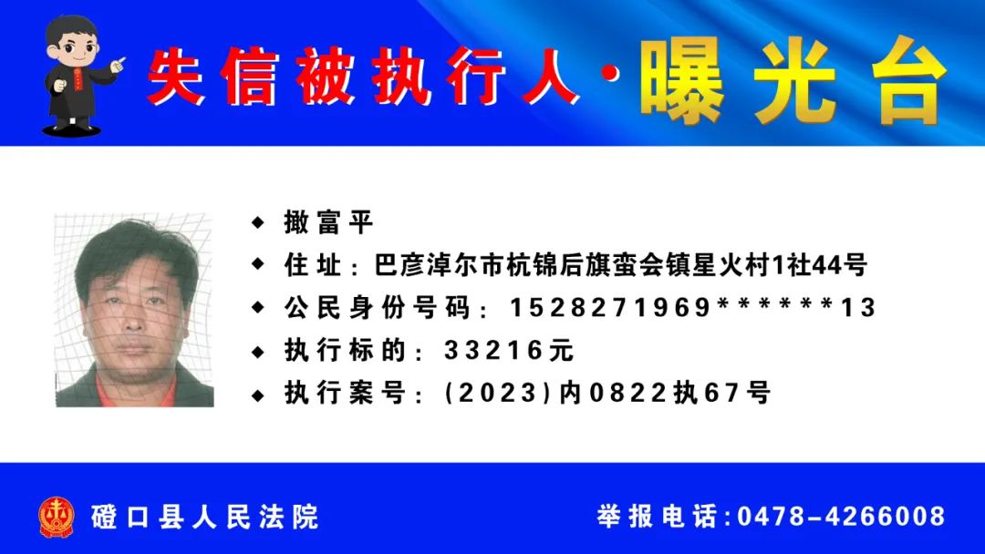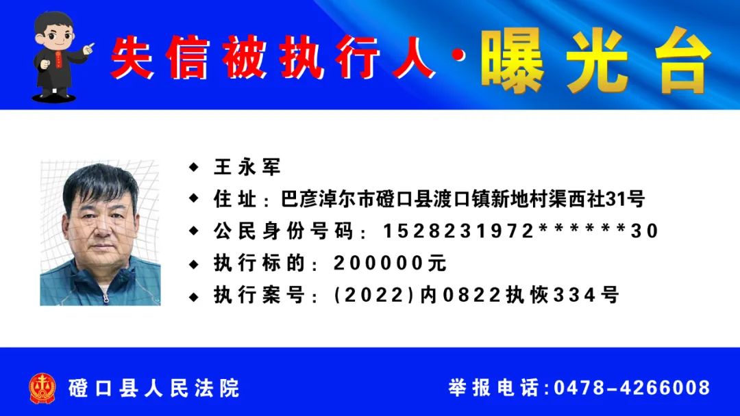 【诚信建设】磴口县人民法院发布失信被执行人名单