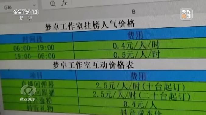 这样的直播“服务”可谓精准拿捏了买家需求,那么,如此独到的服务是如何收费的呢?一份“价格表”清晰记录了“水军”团伙的经营项目及标价:比如,“直播间挂榜”是指直播间挂人气,0.5元每人每小时;“直播间弹幕”与“直播间跟播”,也就是指在直播间发评论和辅助主播直播、调动直播间气氛,2.5元每人每小时;平台涨粉每人0.4元。这些直播带货中的关键环节都被明码标价,引流、互动、推广、涨粉等满满都是套路。