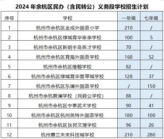 (2)民办学校:余杭区、临平区范围内民办学校今年仍在上述两区范围内招生和补招。