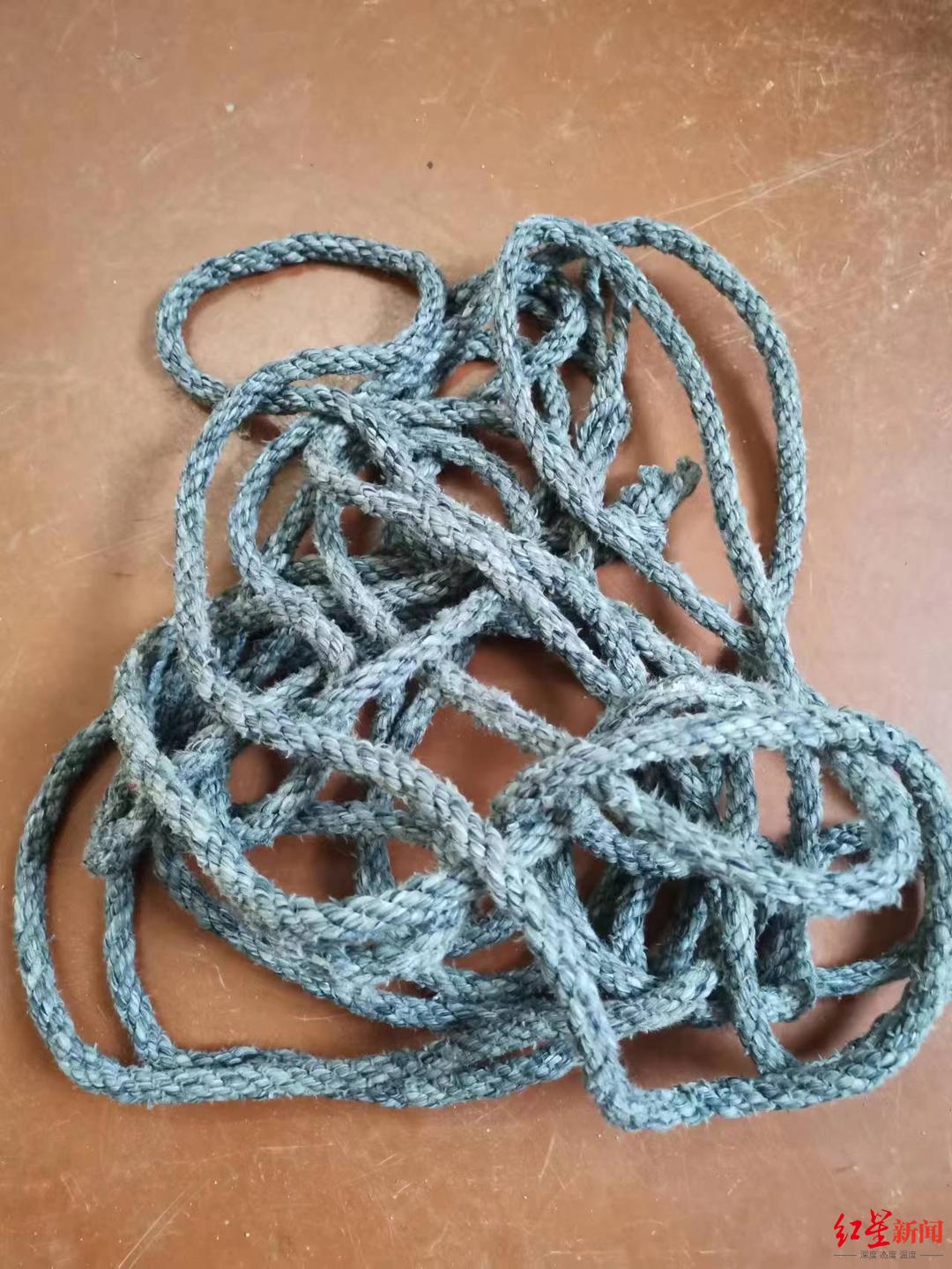 半个多月前的3月11日晚上,“到校门口买肉夹馍”的可心从两名男子手里接过了一根6米多长的绳子。照片显示,绳子是浅蓝色的麻绳,中指粗细。