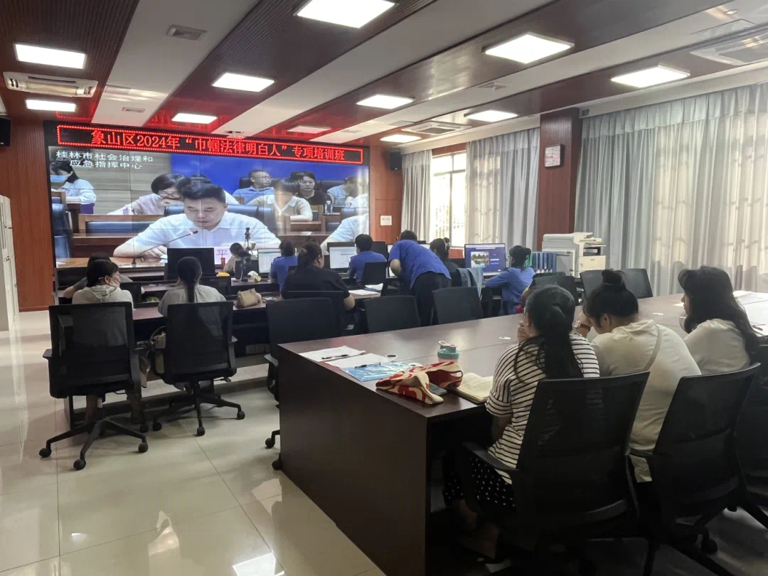 为培育一支群众身边的妇女普法依法治理工作队伍,5月24日,桂林市妇联、市委政法委、市司法局联合举办2024年“巾帼普法乡村行”——“巾帼法律明白人”专题培训班,为全市“巾帼法律明白人”精心准备了一场“法治大餐”。4300余名村(社区)妇联主席、执委,县乡两级政法、司法、妇联相关负责同志,在全市147个乡镇综治中心的157个分课堂,线上同堂上课。