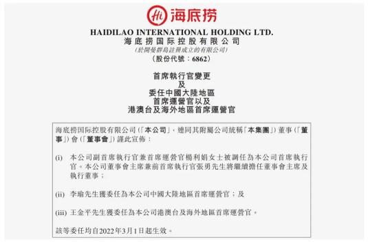 ● 2018年,海底捞在港交所挂牌上市这一年,39岁的她凭借着多年的努力与贡献,正式晋升为公司的首席运营官,而随着海底捞的顺利上市,她又被赋予了副CEO的重任。