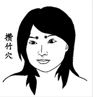 图自健康时报攒竹穴位于眉毛内侧边缘凹陷处。正坐或仰卧位。皱眉,可见眉毛内侧端有一隆起处即为此穴。