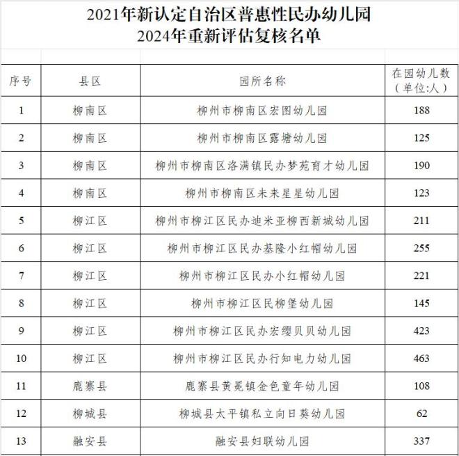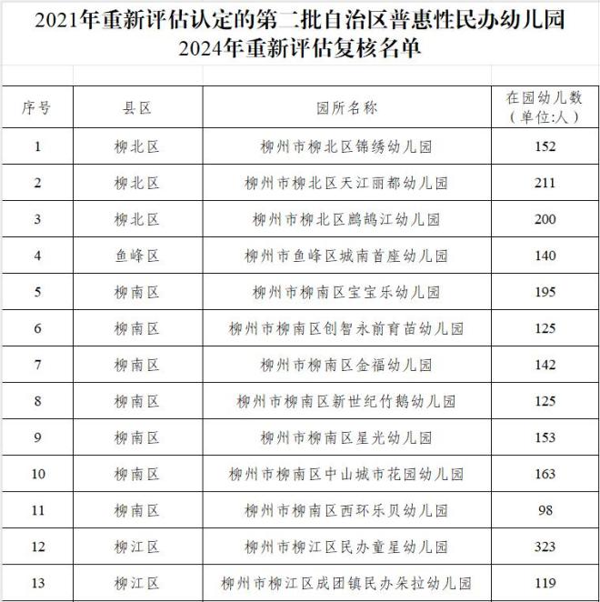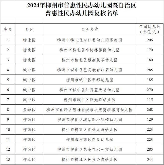 原标题:《名单来了!柳州112家普惠性民办幼儿园复核通过,正在公示》