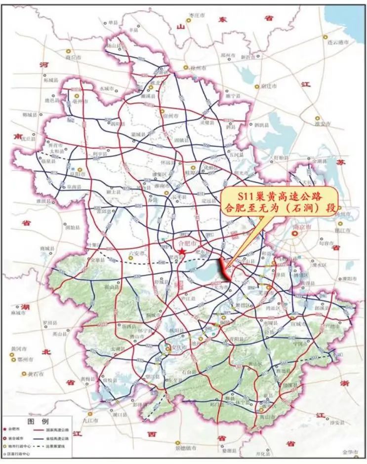 S11巢黄高速公路合肥至无为(石涧)段项目是G9912合肥都市圈环线东环南延,起点顺接明巢高速夏阁西互通,终点与G4221沪武高速衔接,全长30.6公里。该项目建成后安徽省内将增加一条南北全线贯通的轴向通道,对于提升合肥全国性综合交通枢纽地位、完善安徽省高速公路网络布局、加快区域高速一体畅联、加强G60科创走廊合芜重要节点城市联系、加快“两圈两带一群”城镇空间体系发展、服务巢湖市沿线产业发展具有重要意义。