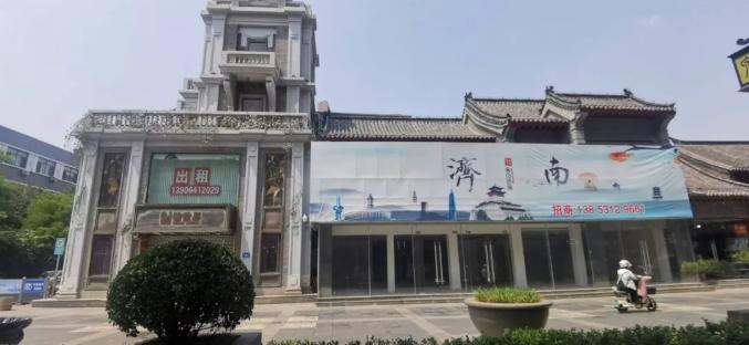 在泉城路上,记者注意到沿街有多处黄金地段的商铺处于招租状态。