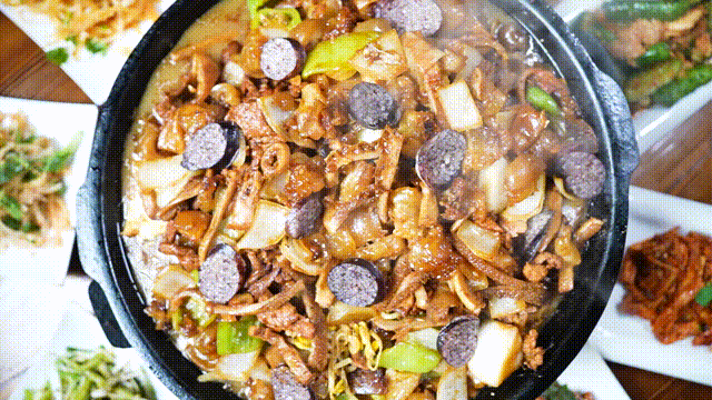 小鸡炖蘑菇、地三鲜、白肉血肠