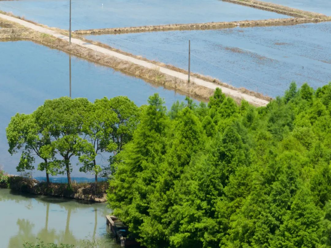 乡村中的绿杉林为何治愈,还因为它侧身可与农田相拥,抬头可与白云细语。绿意衬托下,田间已经为水稻插秧做好准备,水泽盈满,阡陌交通,共同编织出一副生机勃勃的乡村振兴蓝图。春将尽