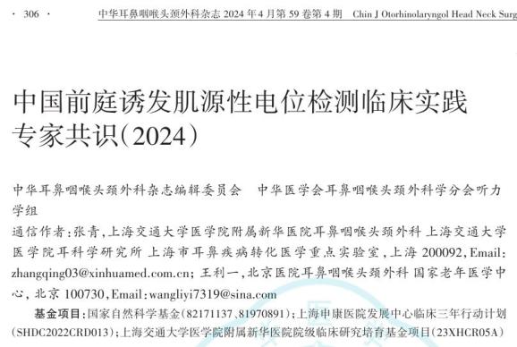 中国前庭诱发肌源性电位检测临床实践专家共识(2024)