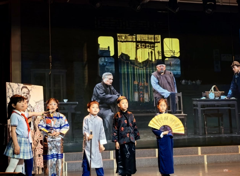 随后,二(5)、二(6)中队与青岛市老年大学艺术院曲艺团和合唱团的爷爷奶奶们共同进行了精彩的艺术展示——脍炙人口的对口快板《党旗鲜艳映苍穹》、动人心弦的合唱《春风十万里》、活力四射的健美操《欢动童年》、生动有趣的戏剧《老舍》。感悟红色峥嵘岁月,汲取红色奋进力量,充分展示了少先队员和老年人的艺术才华和精神风貌,彰显出学校和社会各界的团结协作和共同发展的良好氛围。