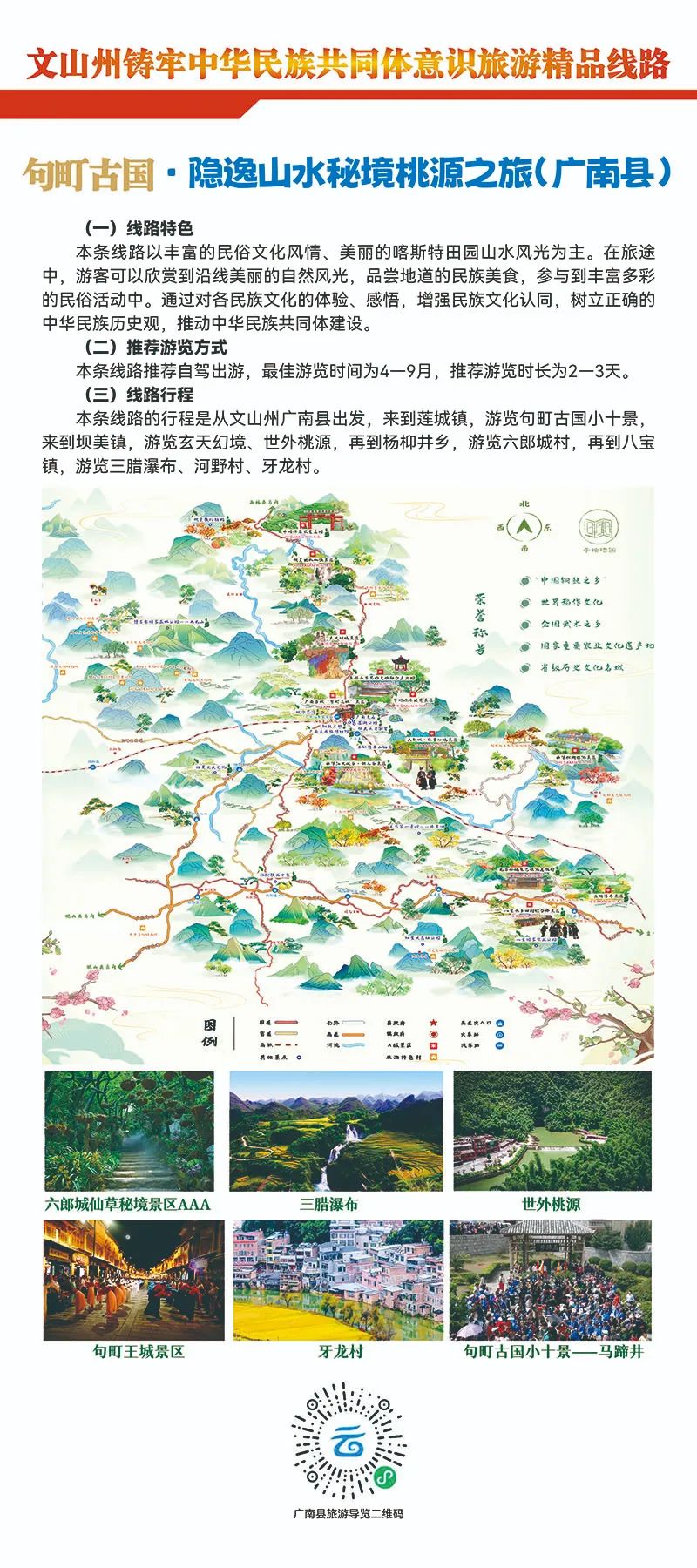 原标题:《一起来打卡!文山州铸牢中华民族共同体意识旅游精品线路请查收》