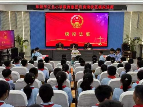为弘扬法治精神,培育和提升青少年的法治素养,着力构建平安、稳定、和谐的校园环境,助力法治强国建设,5月29日下午,东阳法院刑事审判庭联合东阳市江北第二小学,在校园内开展了一场精彩的模拟法庭活动。小学生们在法官的指导下,化身为审判长、审判员、书记员、法警、公诉人、辩护人、被告人,通过模拟法庭角色,完成了宣布法庭纪律、法庭调查、法庭辩护、当庭宣判等一系列刑事诉讼程序,对一场故意伤害案件进行了审理。同学们纷纷表示通过这次活动,增强了自身的法治意识,深切感受到司法的神圣和威严,以及法治的力量,在日常学习生活中要做一名遵纪守法的好学生。模拟法庭结束后,刑庭副庭长、江北第二小学法治副校长吕璎对本次活动进行了总结和点评,希望通过沉浸式体验庭审,让法治的种子在青少年心中生根发芽。“燃灯者计划·模拟法庭”活动作为东阳法院2024年度“燃灯者计划”未成年人权益保护周第三站,旨在引导青少年培养法治观念,提升法律素养,护航青少年健康快乐成长。