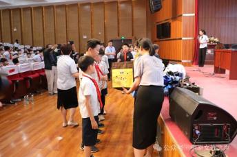 5月24日,新乡市妇联联合相关部门开展“迎六一·关爱职工子女”活动走进新区小学,为学生代表授发“梦想点亮童年”分享活动队旗,并为学生们颁发文体物品,丰富学生的课余生活。焦作市