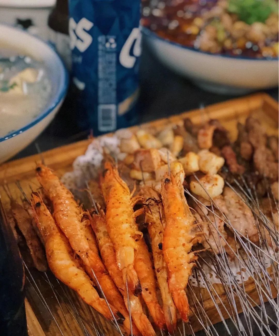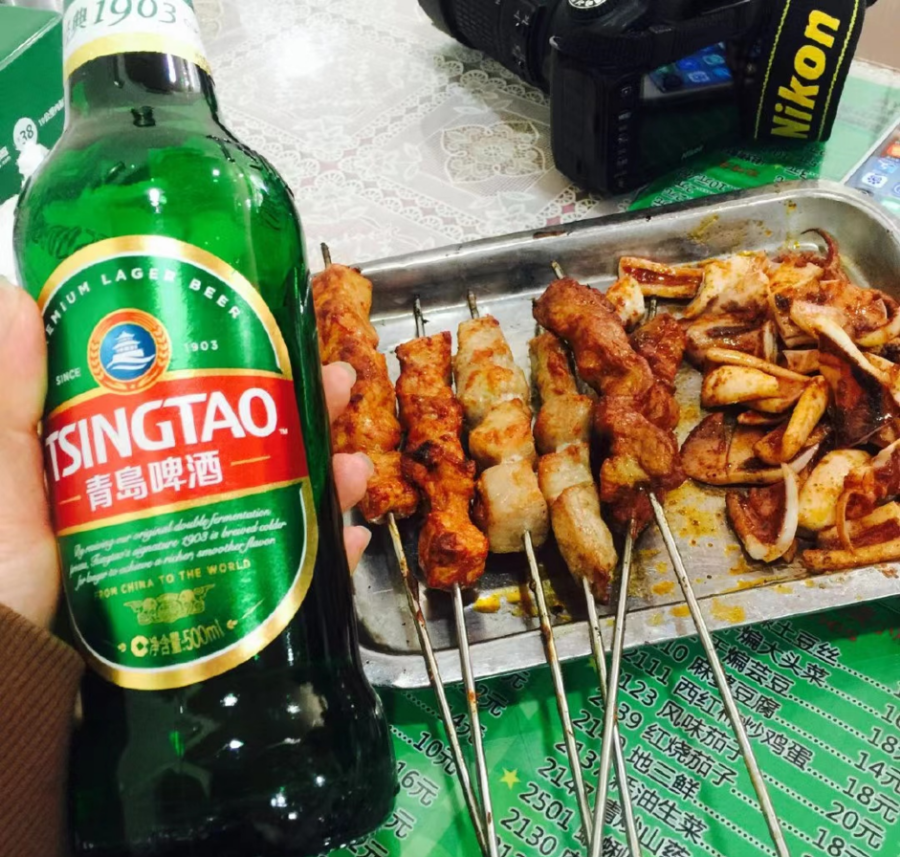 鲜嫩爽滑的海鲜,配上微微的炭火香气,谁吃上一串不感叹一句“爱了”呢?何况,还有山东半岛撸串唯一指定饮料:青岛啤酒!