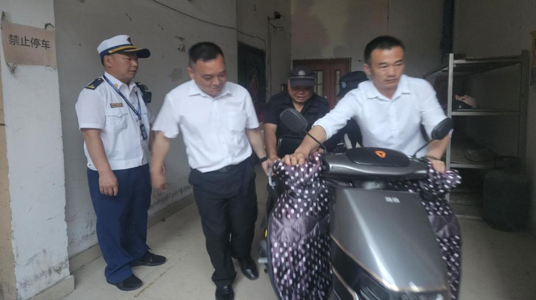 2.电动自行车停放在楼道。