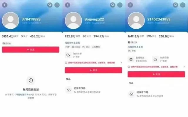 王红权星、柏公子、鲍鱼家姐账号被封。图源:社交平台截图虚拟的“流量盛宴”