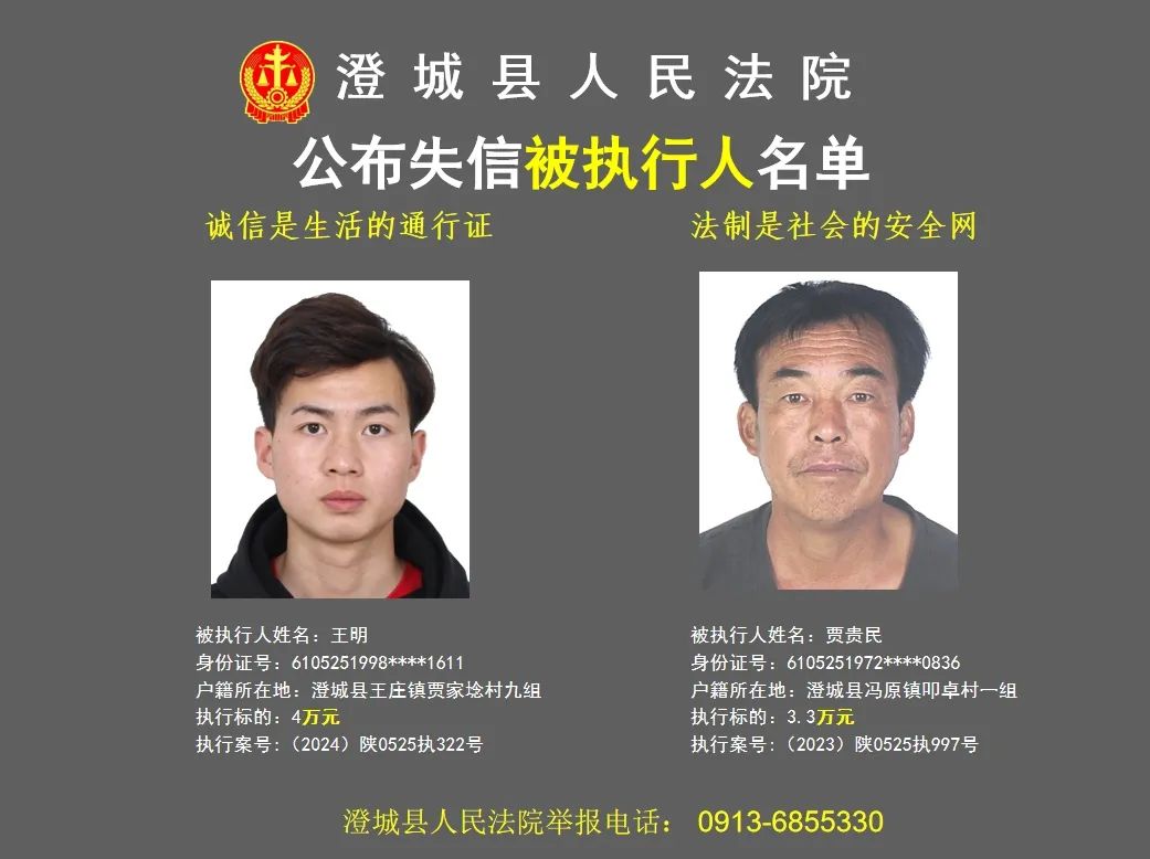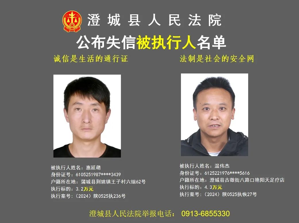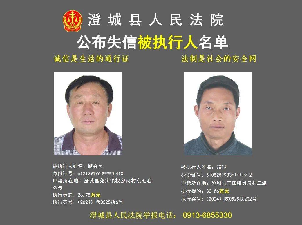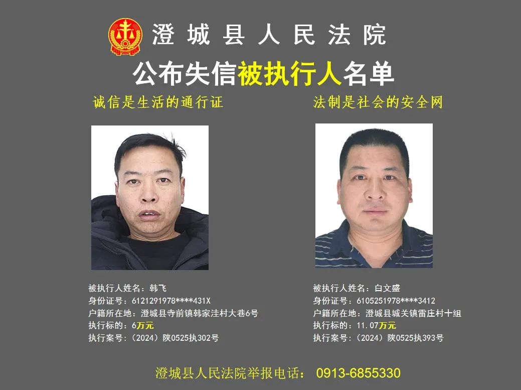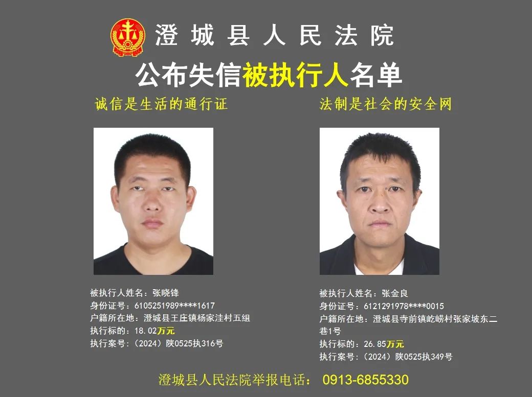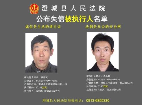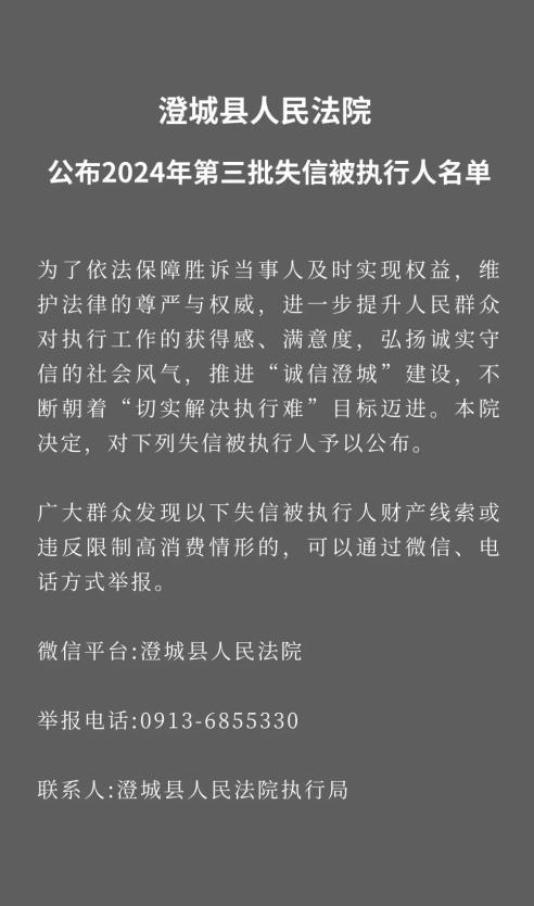 原标题:《澄城县人民法院公布2024年第三批失信被执行人名单》