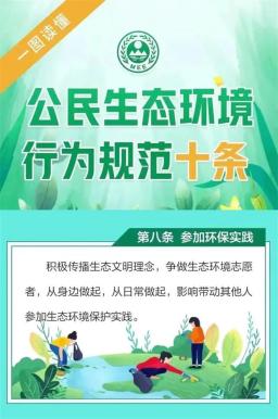 6月5日是新修订的《中华人民共和国环境保护法》规定的环境日。日前,生态环境部正式发布2024年六五环境日主题——“全面推进美丽中国建设”。下面,和小通一起来学习公民生态环境行为规范十条中的第八条。