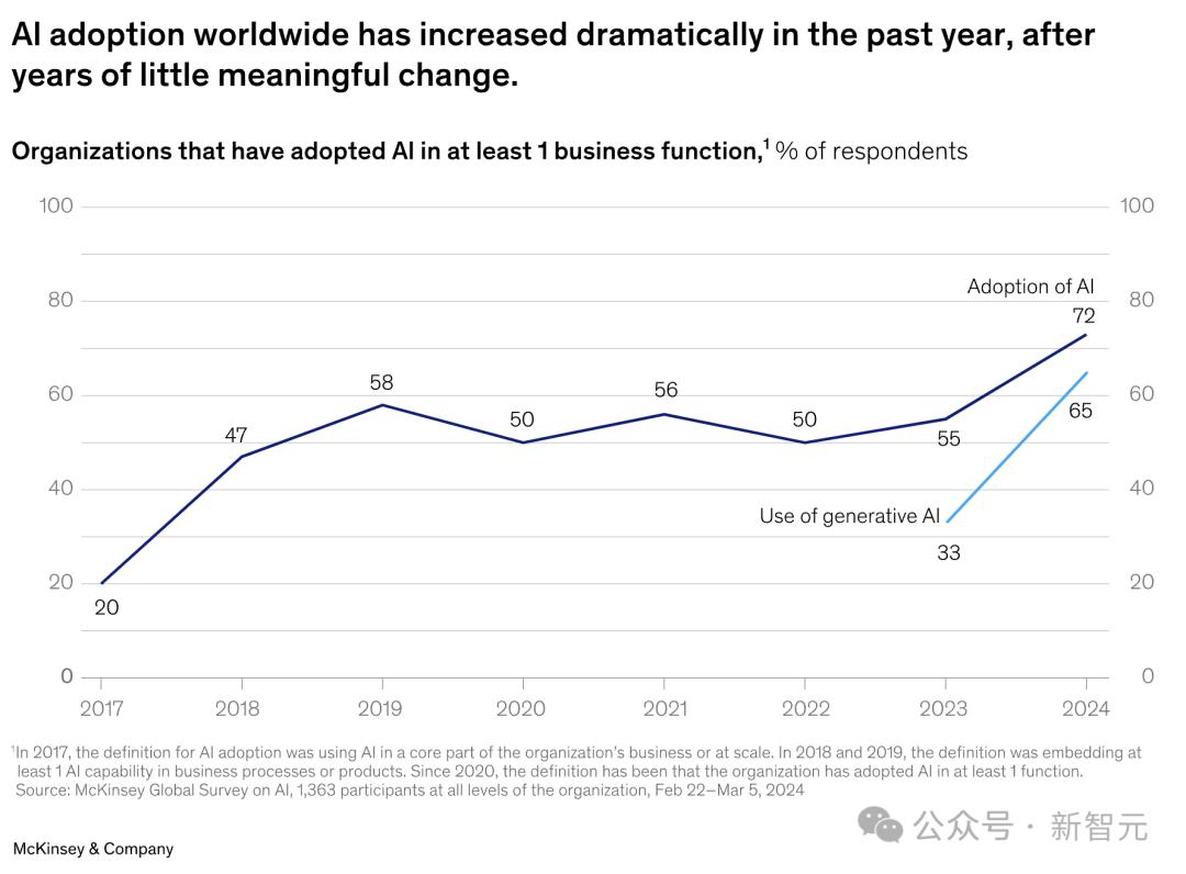 麦肯锡最新的全球调查报告称,65%的受访者表示企业会经常使用生成式AI。